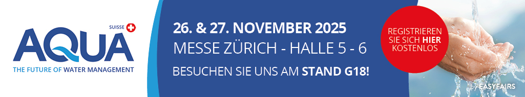 Wir sind dabei, wenn sich die Schweizer Wasserbranche an der AQUA Suisse am 26. & 27. November 2025 in der Messe Zürich trifft! Reservieren Sie sich das Datum und registrieren Sie sich noch heute für einen kostenlosen Messeeintritt.